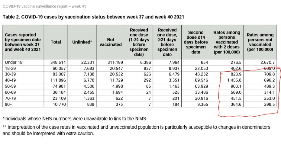 About 70% of the UK population is vaccinated, and per hundred thousand people there are TWICE as many cases occurring in the vaccinated.