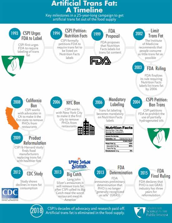 CSPI was also instrumental in driving heart disease skyward with its wildly successful pro-trans fat campaign. It was largely the result of CSPI’s campaign that fast-food restaurants replace beef tallow, palm oil and coconut oil with partially hydrogenated vegetable oils, which were high in synthetic trans fats linked to heart disease and other chronic diseases.