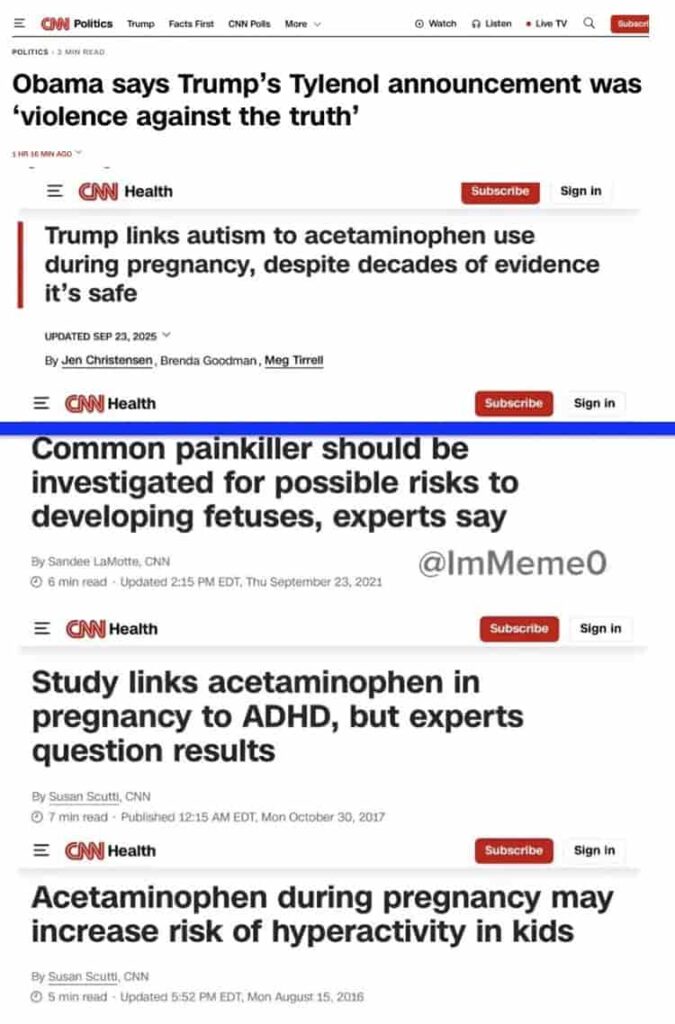 Note: Regrettably, to show they believed in “Science,” pregnant mothers began quickly posting videos of themselves taking large amounts of Tylenol (which I compiled on 𝕏 here — including one tragic overdose1).